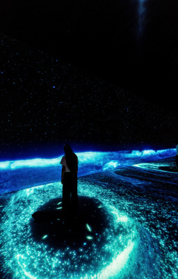 Enjoy the peaceful aura of “Beach Night Being,” as you walk along a darkened beach taking in the soothing sight and sound of waves breaking on the shore. Then marvel at the images of various sea creatures as they appear and float along the scene. The next space, also nautical, captures the tremendous power of nature. “Wave” will keep you mesmerized as you stand before an enormous wave that seems to be crashing down upon you, only to be trapped by its glass enclosure.