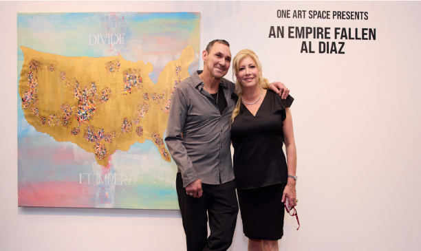 In October, One Art Space opened a solo show that reads like a statement of intent: “An Empire Fallen,” by Al Diaz. Diaz is not simply a contemporary artist. He is part of the DNA of downtown New York. A first-generation subway graffiti artist, he gained lasting recognition through SAMO, the cryptic street poetry collaboration with Jean Michel Basquiat that helped define the late 1970s avant garde moment. In “An Empire Fallen,” Diaz explored the collapse and reinvention of cultural empires through text, symbol and social commentary, pushing the viewer to confront how power, consumerism and history press against the present day.