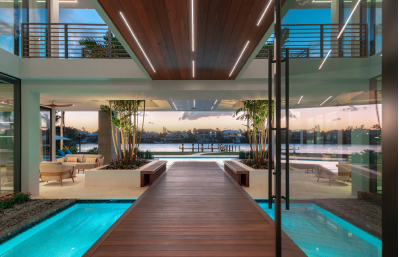 Commanding an impressive 180 feet of direct Intracoastal frontage, the property provides deep-water yacht access at every tide, including private docking accommodations for yachts up to 160 feet, making it an ideal haven for boating enthusiasts.
