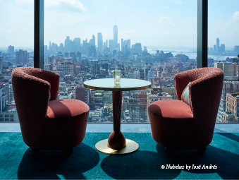 If there’s one thing we have no shortage in New York, it’s skyscrapers with views for days, and in the heart of NoMad on level 50 of the Ritz-Carlton is Nubeluz, a stunning 270-degree view cocktail concept by award-winning Chef José Andrés. Envisioned as a lightbox in the sky, enticing guests with its stylish plush and maximalist interior and modern interpretations of classic cocktails, Nubeluz has become a favorite among guests of the property and New York’s ‘in the know’ crowd. Worth noting this isn’t the place you roll up to, you want to book an advance. Years since it’s opened, this place continues to book up making it a ‘hard to get’ table but the juice is worth the squeeze – the cocktails and small tapas-inspired bites with a side of views is well worth the effort.