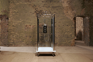 The Spittal Shower is a complete glass-enclosed shower unit, which can stand magnificently in the middle of a bathroom, or even in a bedroom. The freestanding shower has a standard 8-inch shower head and hand shower attachment that provides a blissful all-over drenching. The cast iron shower tray comes in various finishes, including primed, ready to paint on site, painted in any color or polished and lacquered. The beautifully crafted shower is entirely freestanding and comes with a soap dish holder fitted in the glass for shower products. Info: drummonds-uk.com/product/spittal-freestanding-shower.