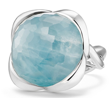 sterling silver band and beautiful faceted stone center lend enduring elegance to the Continuance ring from David Yurman. A perfect finishing touch to your summer blues.