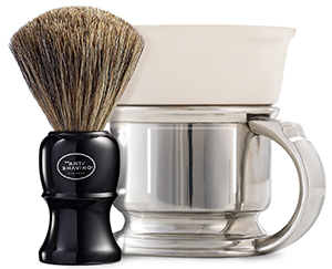 The Art of Shaving This bundle includes both a Pewter Shave Mug and Genuine Black Shaving Brush to help achieve a close shave. The two-piece mug