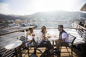 Dine When You Wish Celestyal Crystal has two main dining rooms (no reservations needed) and a buffet, serving a choice of both Greek and international cuisine. It also has one specialty restaurant, the Fish Tavern, open for dinner at an additional cost. A buffet breakfast each morning fueled us for the day of discovering the Greek Islands.