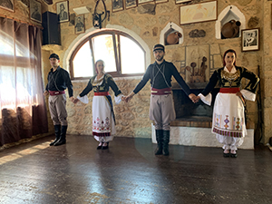 Day 6: Heraklion, Crete With an early arrival and late departure in Heraklion, Crete, we decided on an excursion in the morning and beach time in the afternoon. Celestyal offers an included excursion to “Knossos Palace and the Archaeological Museum,” but we opted for the add-on excursion “Experience the Cretan Countryside and Cretan Lifestyle.” We started the day at the archaeological site, the Minoan Palace of Knossos, with a guide who was part of the excursion. Afterward, our motor coach took us to the traditional tiny Crete village of Stironas, where we visited a winery and met the wonderful and impassioned owner, Vasilis. We enjoyed watching traditional dancers and tasting snacks, wine, and raki. The highlight, however, was Vasilis’ animated description of the winemaking process and his love for his family.