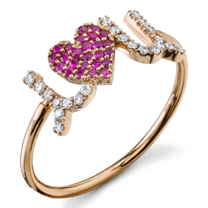 If you want to splurge for love, Sydney Evan’s Love Collection has jewelry featuring hearts, love and diamonds, and rubies. Like the Rose-Gold & Diamond Large I Heart U ring with pave diamonds and rubies, and 14K rose gold band, or Rose-Gold & Pink Sapphire Love Ring, a 14K love ring finished in rose-gold and pink sapphires.