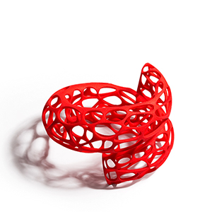 Designer Akiyo Matsuoka of Leona NY has taken 3-D printing to fresh, glamorous heights with her jewelry, which is made to order in an extremely flexible, lightweight nylon plastic. It molds comfortably to the body, and is available in solid, saturated colors. Info: leonany.com.
