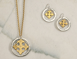 The masterminds behind handcrafted jewelry dazzle me with their artistry, none more than Juli, aka the creative force behind Julio Designs. With an eye for the unique, she has created line after line of statement necklaces, bracelets, and earrings. Having been to Malta, I was drawn to Juli’s use of the Maltese cross in several of her pieces, only to learn she has made a study of world crosses for their design elements. The Maltese Cross Hoop Earrings (as shown with matching necklace) are compliment-generating favorites—both in person and on Zoom. Next stop, bracelets! Info: juliodesigns.com.