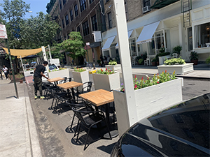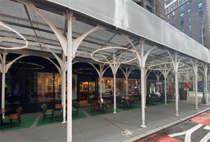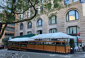 This Midtown favorite (205 West 57th Street) is now featuring outdoor dining and offers guests their delicious food rain or shine under scaffolding. Menu offerings include an array of omelettes, breakfast bowls, pancakes, waffles, French toast, salads, burgers, and triple decker sandwiches in addition to an array of desserts and drinks including frozen margaritas. Open daily from 9 am to 9 pm.