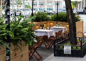 The popular Lower East Side pizzeria (168 Ludlow Street) offers half a dozen coveted seats for outdoor diners. Only the freshest ingredients are used from local suppliers for their authentic New York-Style pizzas. Indulge in their Buffalo Chicken Pizza, Lasagna Pizza with sausage, ricotta, and homemade marinara sauce topped with fresh basil, and the Quattro Formaggi Pizza with Pecorino Romano, parmesan, provolone, mozzarella, and homemade marinara sauce. Of course, pair it with one of their exclusive cocktails like the Consigliere with blood orange juice and orange bitters infused Prosecco, the Tuscan Sun featuring Soju with pomegranate and lime juice, or the Ferrari Rozé Soju featuring Strawberry Rosé with balsamic syrup Soju. Dine al fresco from Tuesday through Thursday from 12 to 11 pm; Friday and Saturday from 12 pm to 1 am; and Sunday from 12 pm to 12 am.