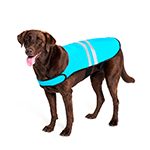 ZippyPaws Cooling Vest will do the trick. For the active dog, this vest is reflective for safety and cooling for comfort. Soak the garment in water for 5 minutes, wring out the excess water and you are ready to go! Info: zippypaws.com