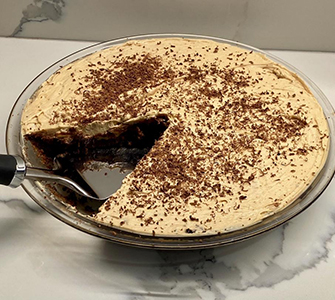 Building The PieAfter Double Chocolate Pudding mixture has cooled, pour into pie crust (about ½ to 2/3 high). Place pie pan in the refrigerator for 20 minutes. Using a spatula, spread Peanut Butter Buttercream across the top of the pie, careful to not apply too much pressure to avoid mixing the chocolate and buttercream. Top with whipped cream and a dusting of espresso or chocolate powder.
