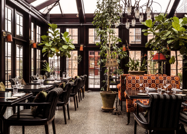 Adding to the experience are three dining options, including The Maker Café, inspired by cafes in Paris and Vienna; The Maker Lounge, an intimate hideaway, cocktail bar and patio in the converted Carriage House with soaring ceilings and a Belgian 1878 Neoclassical fireplace with an ornately carved fireplace mantle, and the floor-to-ceiling mirror is restored from the 18th century; and The Maker Restaurant, housed in a glass-ceiling conservatory enveloped in layers of greenery and textural details. Executive chef Michael works with local farms and purveyors to offer seasonal contemporary American fare.