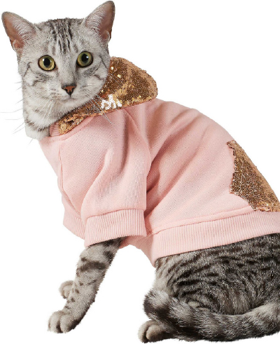 This is for the kitty-diva who knows how to shine in the spotlight with this adorable hoodie. Let Frisco add a little meowy-wowy to your cat’s holiday.