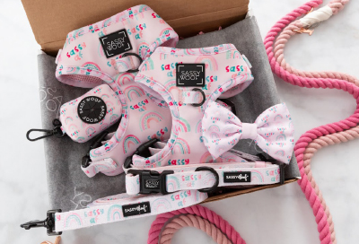 Sassy Woof has a print for every season, mood, and holiday. Rock this harness and leash set for February and beyond. Info: sassywoof.com