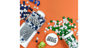 School colors, clip art, customized text and other M&M perks—including your favorite grad’s face—have upped the big day ante, and it gets even better when you deliver the quintessential candies in a foot-tall bottle, sleek gift jar, or way awesome Personalizable M&M’s Class of 2022 Dispenser. Reminiscent of classic gumball machines, this cool refillable device is small enough for side table or desk snacking, but big enough to wow as centerpiece. Worth noting: “Commencement” sports double m’s—accident or happy coincidence? Info: mms.com