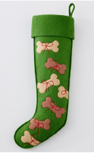 Be sure to hang your buddy’s stocking from the mantle—Santa is on his way! Garnet Hill’s dog bone-themed stocking has ample room for goodies, treats, and toys.