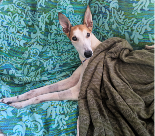 Are there special tips for caring for this breed? This may surprise you, but greyhounds are like giant cats! They are quiet, calm, rarely bark, and do not shed. Greyhounds are often called 45-mile-per-hour couch potatoes because they love to sleep. Like my dog, Gina, they take retirement seriously, believe me. Anyone interested in greyhound rescue may contact our office or go online at GREY2K.org/adopt or petfinder.com anytime.