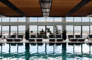 Beyond the pool, the spa unfolds in layers of warmth and calm. Eucalyptus steam rooms, contrast bathing areas, and expansive relaxation lounges invite guests to move slowly, following the natural rhythm of heat, water, and stillness. Large windows frame endless ocean views, making the landscape itself part of the treatment.