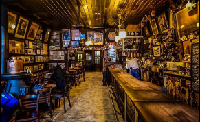 Inside, the atmosphere is simple yet deeply character-rich — sawdust floors, vintage photographs, and memorabilia covering every inch of the walls. The menu remains famously straightforward, with patrons choosing between “light” or “dark” house ale, served two mugs at a time.