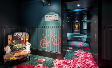 Located in a district marked by an industrial past and a technological future (think Silicon Valley, but across The Pond, in a nabe that is a mix of art and tech galleries, artsy and dot-com businesses, and a bustling gentrification of industrial areas), the nhow embraces traditional design touchstones, metabolizing them with gusto and regurgitating them in an unconventional and disruptive way. Here, tradition and innovation collide.