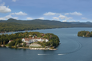 Occupying its own island on Lake George, The Sagamore is an escape to a bygone era. Accommodations in the 1883 colonial-revival main house have views of the lake or gardens. The decor, including marble bathrooms and handsome wood furniture, is elegant but not formal, while accommodations in the newer lodge buildings are country-chic. Lodge rooms have garden views; suites have gas fireplaces and a terrace with a lake view. The separate condo units have two bedrooms, two bathrooms, a kitchen, a living room, a dining area, and two lake-view terraces. Leather couches, Adirondack-style furniture, and wood-burning fireplaces contribute to the lodge feel here. Notable facilities include an 18 hole Donald Ross golf course,a sailing school and a full-service spa.